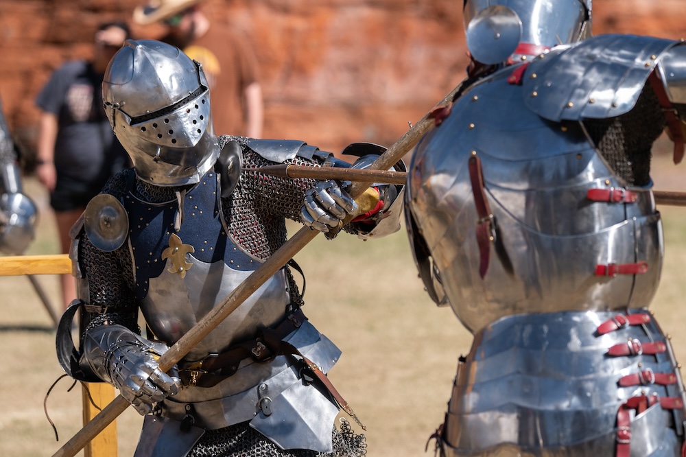 On leaving your pavilion, you must be well armed and furnished with your axe and other relevant weapons. Recommending yourself to God, you must make the sign of the cross and march upright, with a good and valorous countenance, gazing at the other end of the field to seck out your adversary. And gazing upon him you must take in a measured manner a proud courage in youself to fight valiantly as is becoming.